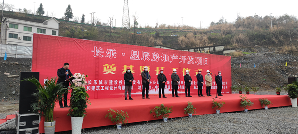 2021年1月26日上午,由华体会在线承建的长乐▪星辰住宅项目奠基暨开工仪式在项目现场热烈举行。湖北省宜昌市五峰土家族自治县住房和城乡建设局副局长陈白华、县质量安全监督站站长邓简涛、华体会在线五峰长乐▪星辰项目经理王国云,项目参建各方及新闻媒体共40余人出席。宜昌市长乐城市建设投资开发有限责任公司总经理刘鹏主持。